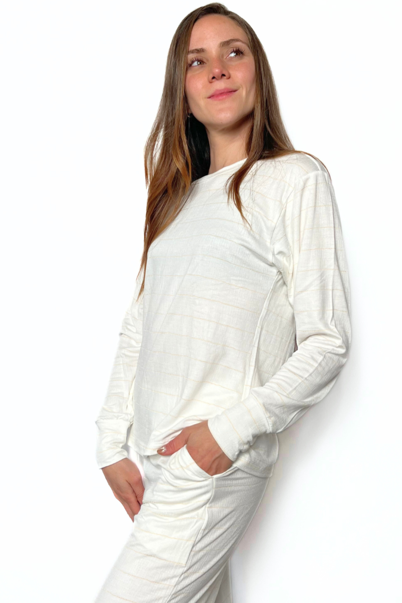 Descubre el confort que mereces con nuestra pijama de dos piezas, manga larga y pantalón largo. Fabricada con tela de fibra natural proveniente de pulpa de madera, esta prenda ofrece una suavidad excepcional y una frescura inigualable. Al ser una fibra natural, permite que tu piel transpire de manera natural, brindándote una sensación de bienestar durante toda la noche.